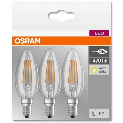 Osram BASE FILAMENT LED Tropfenlampe mit 4 Watt, E14, warmweiß, klar – 3 Stück