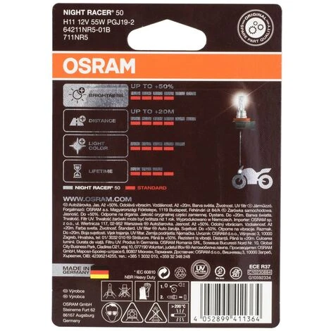 Die Lampen Osram H11 Night Racer 64211NR5-01B müssen nur selten ausgewechselt werden, da sich dieses Produkt durch eine hohe Langlebigkeit auszeichnet.