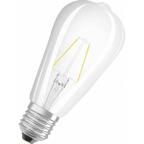 LED-Lampen, klassische Edison-Kolbenform. Produkteigenschaften: LED-Lampen für Netzspannung. Nicht dimmbar. Lebensdauer: bis zu 15.000 h. Ausstrahlungswinkel: bis zu 360°. Lampe aus Glas. Gute Lichtqualität, Farbwiedergabeindex Ra: ? 80, konstanter Farbort. Produktvorteile: Sehr geringer Energieverbrauch. Sofort 100 % Licht, keine Aufwärmzeit. Einfacher Austausch von StandardGlühbirnen. Lampen mit innovativer LED-Filament-Technologie. Anwendungsgebiete: Ideal für dekorative Einbauten. Anwendungen im Haushalt. Allgemeinbeleuchtung. Einsatz im Außenbereich nur in geeigneten Außenleuchten.Leuchtmitteltyp: LED FILFassung: E27Leistung: 2,5 WLichtleistung: 250 lmLichtfarbe: 2.700 K (warmweiß)Dimmbar: neinBauart: ST64Farbe: klarMaterial: GlasMaße: 14,3 x 6,4 cm (L x Ø)Abstrahlwinkel: bis zu 360°Lebensdauer: 15.000 hSchutzart: IP20Entspricht: Glühbirne 25 WTemperaturbereich: -20 bis +40°CSpannung: 220-240V, 50/60 HzLieferumfang: 1x Leuchtmittel