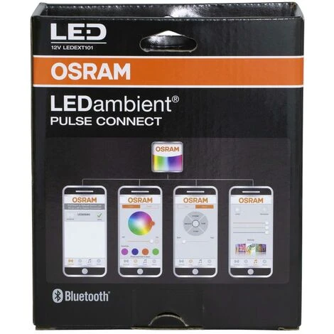 Stylische Innnenraumbeleuchtung. LEDambient PULSE CONNECT ist eine kleine Scheibe mit verchromter Oberfläche, die direkt mit dem 12-Volt-Bordnetz verbunden wird. Mithilfe der kostenlosen OSRAM LEDambient CONNECT App können Sie mittels Bluetooth die Farbe, den Modus und den Lichtimpuls passend zum Takt Ihrer Musik steuern. Das LEDambient PULSE CONNECT Lichtsystem lässt sich einfach installieren und betreiben. Es ist für den Fahrzeuginnenbereich konzipiert.
